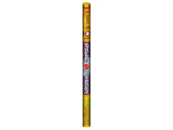 3 эффекта. Разноцветные кометы разрываются сферами из: 1. серебряных форсов с красными огнями на концах и серебряных мерцающих огней; 2. красных и трещащих огней; 3. золотых форсов и множества трещащих сфер.