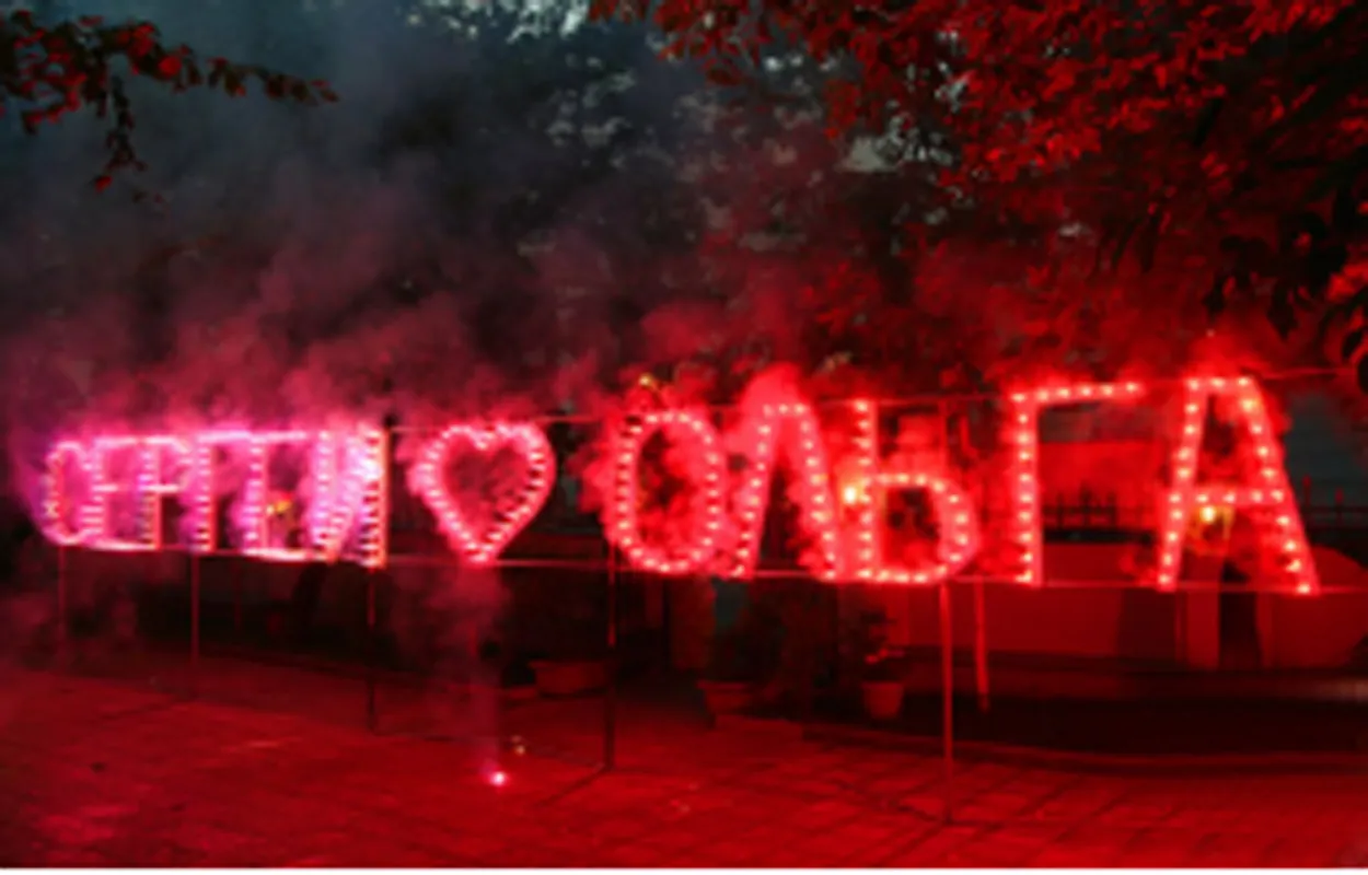 Огненные, горящие надписи на празднике – это яркий и запоминающийся фейерверк. Буквы и цифры пиротехнической надписи - это заметная и запоминающаяся часть пиротехнического представления. Пиротехническая надпись обычно является завершающим элементом фейерверк представления. Огненные надписи мы собираем из элементов разной высоты - от 50 до 120 сантиметров: буквы, цифры, логотипы, разные фигуры, в том числе и фигуры в форме сердец. Пиротехнические надписи – слова горят от 40 секунд до 5 минут и пользуются устойчивым спросом у заказчиков фейерверк шоу, готовых оставить себе в торжественный момент завершения праздника эффектное фото – видео на фоне горящей пиротехнической надписи